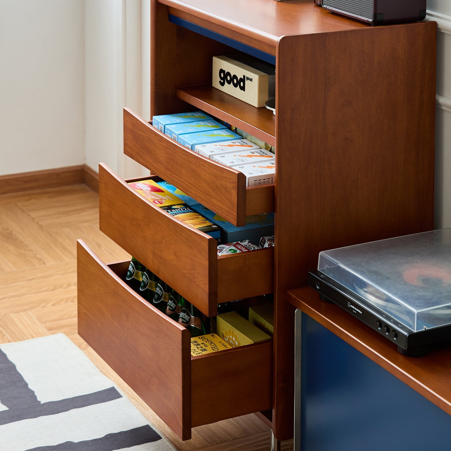 Sturdy rails ensure each drawer glides effortlessly, offering quiet and convenient daily use.