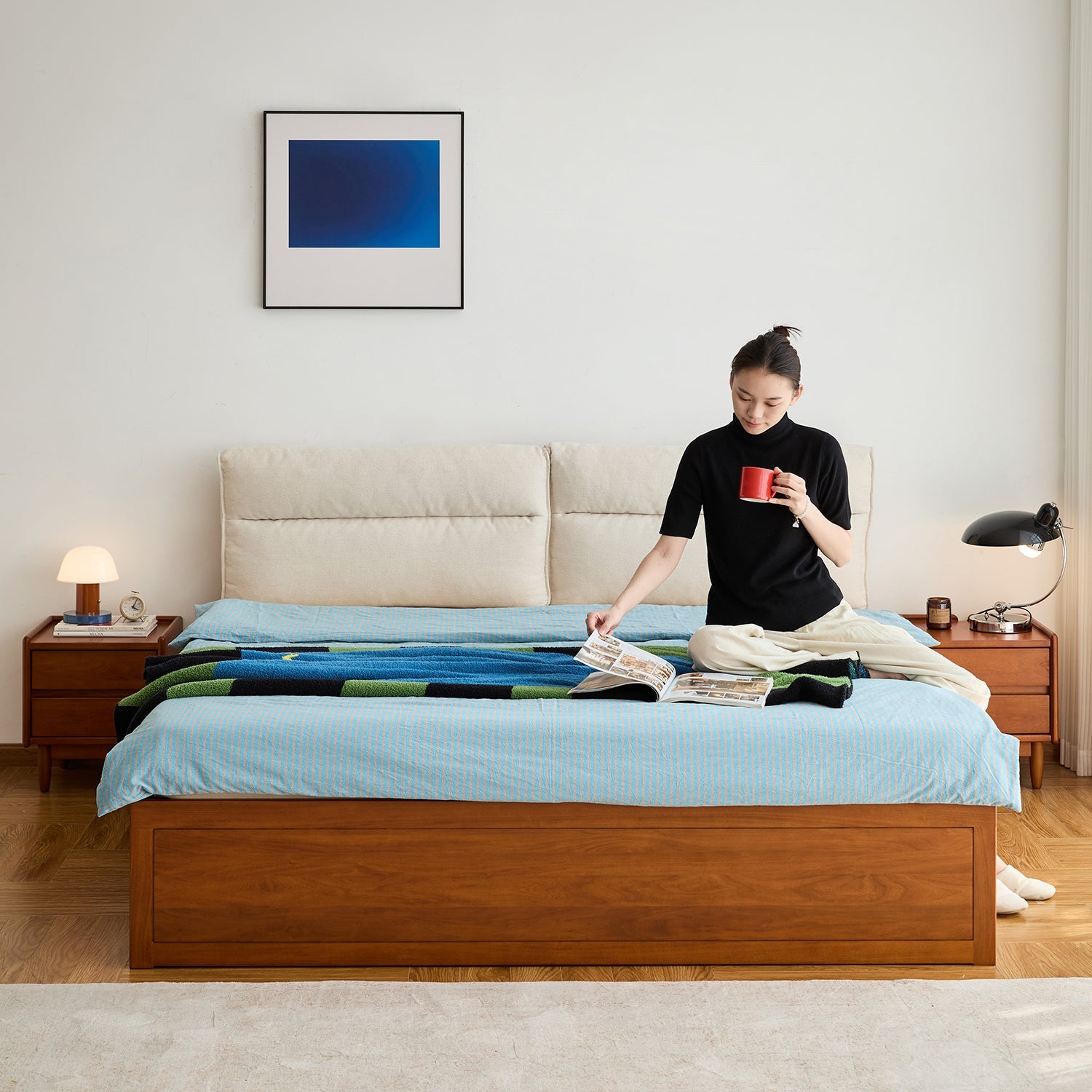 Thicker, fuller cushions crafted with a 6:4 goose-feather and doll-cotton mix deliver plush back support that feels soft yet supportive for long reading or relaxing moments. |