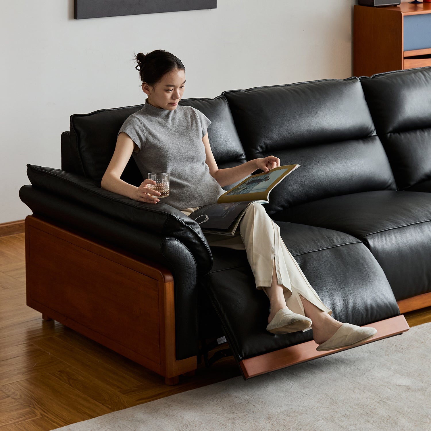 Wrapped in premium genuine leather, this sofa delivers a naturally soft touch, rich texture, and lasting durability that looks better with time and daily use. |