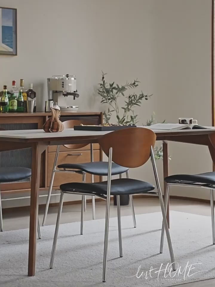 Vintage Boxwood Microfiber Leather Dining Chair BIRD blends mid-century elegance with ergonomic comfort. Featuring a 105° curved backrest, premium leather, and sleek stainless steel legs, it's a refined and stylish seating choice.
