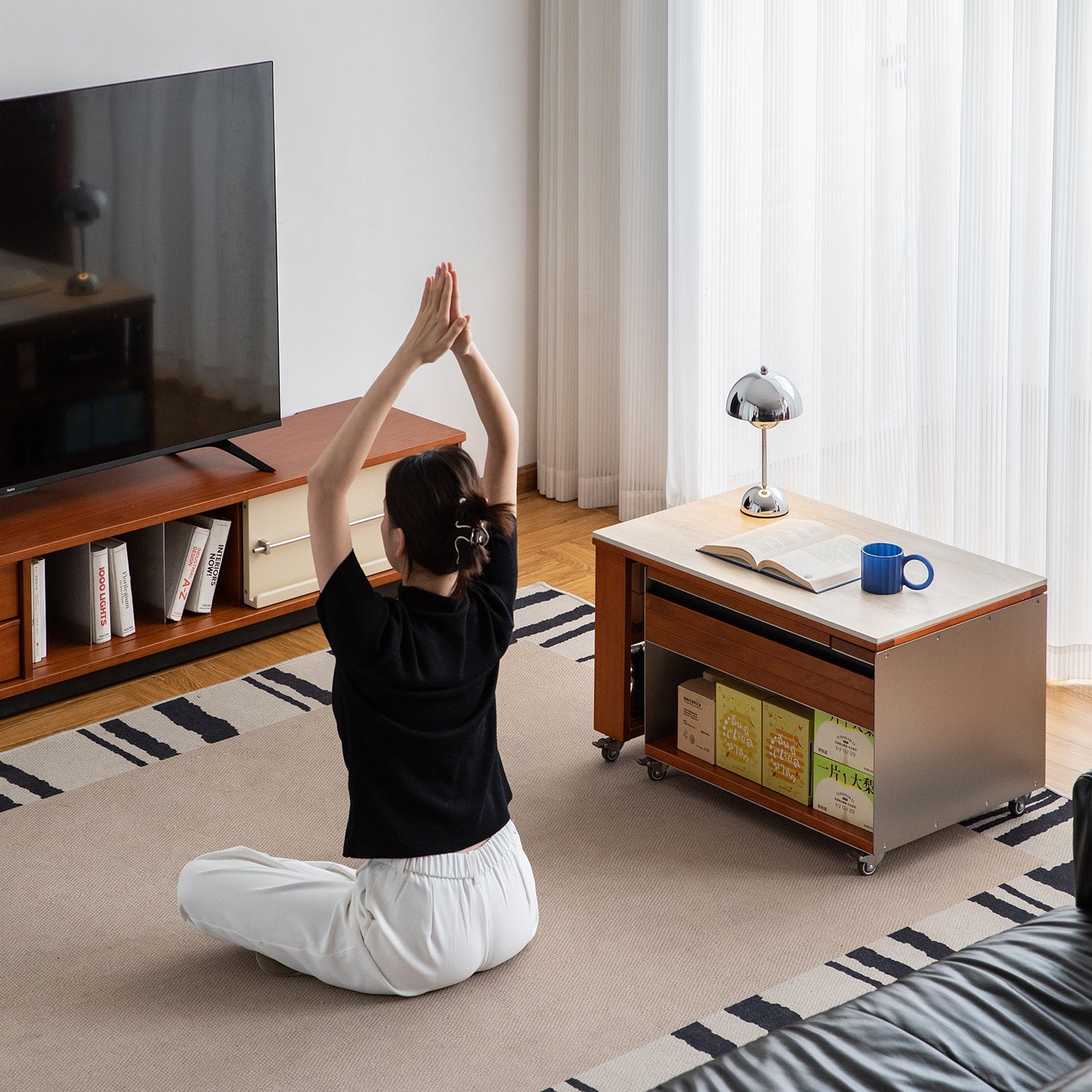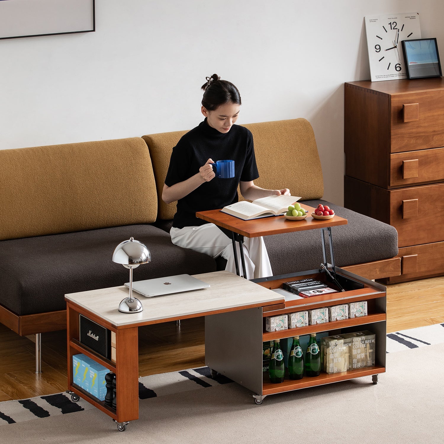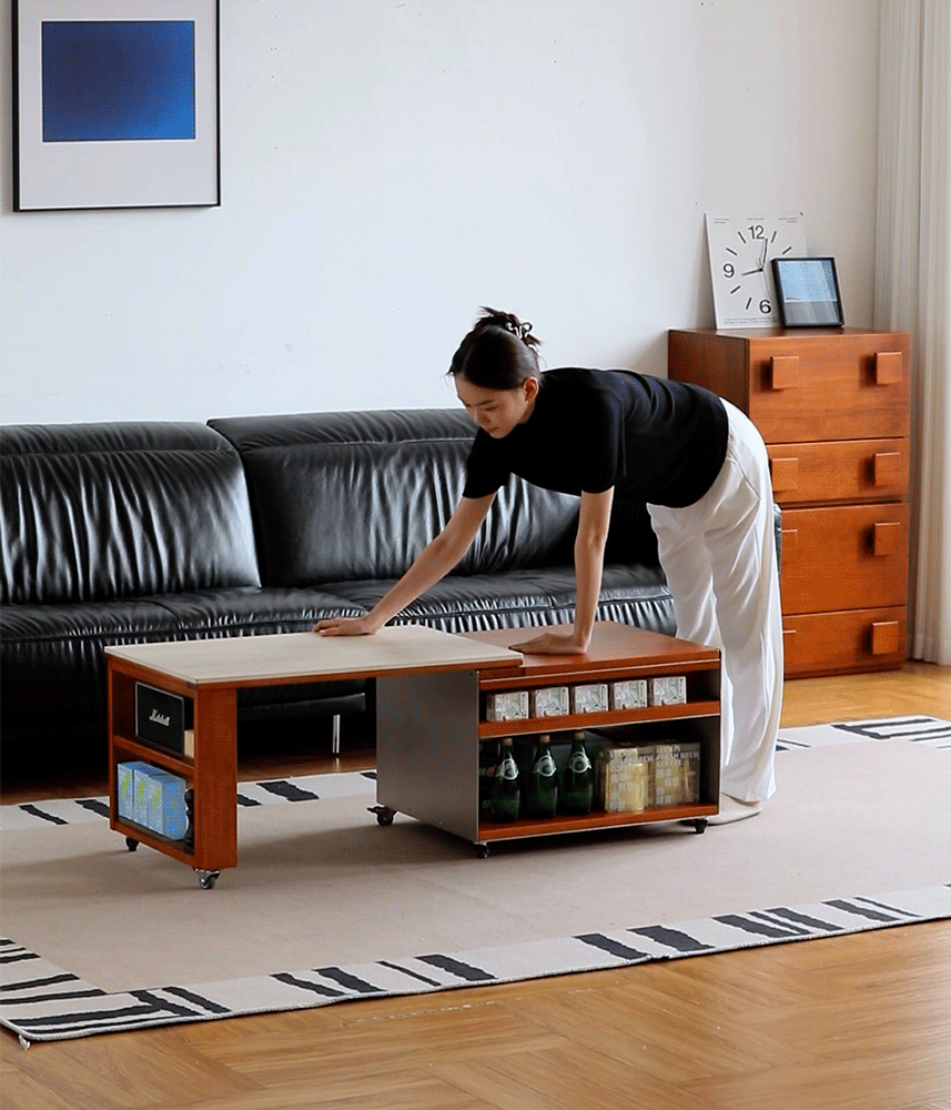 Smart lift up tabletop brings the surface closer to you, making it comfortable for dining, working, or relaxing on the sofa while keeping your posture natural. |