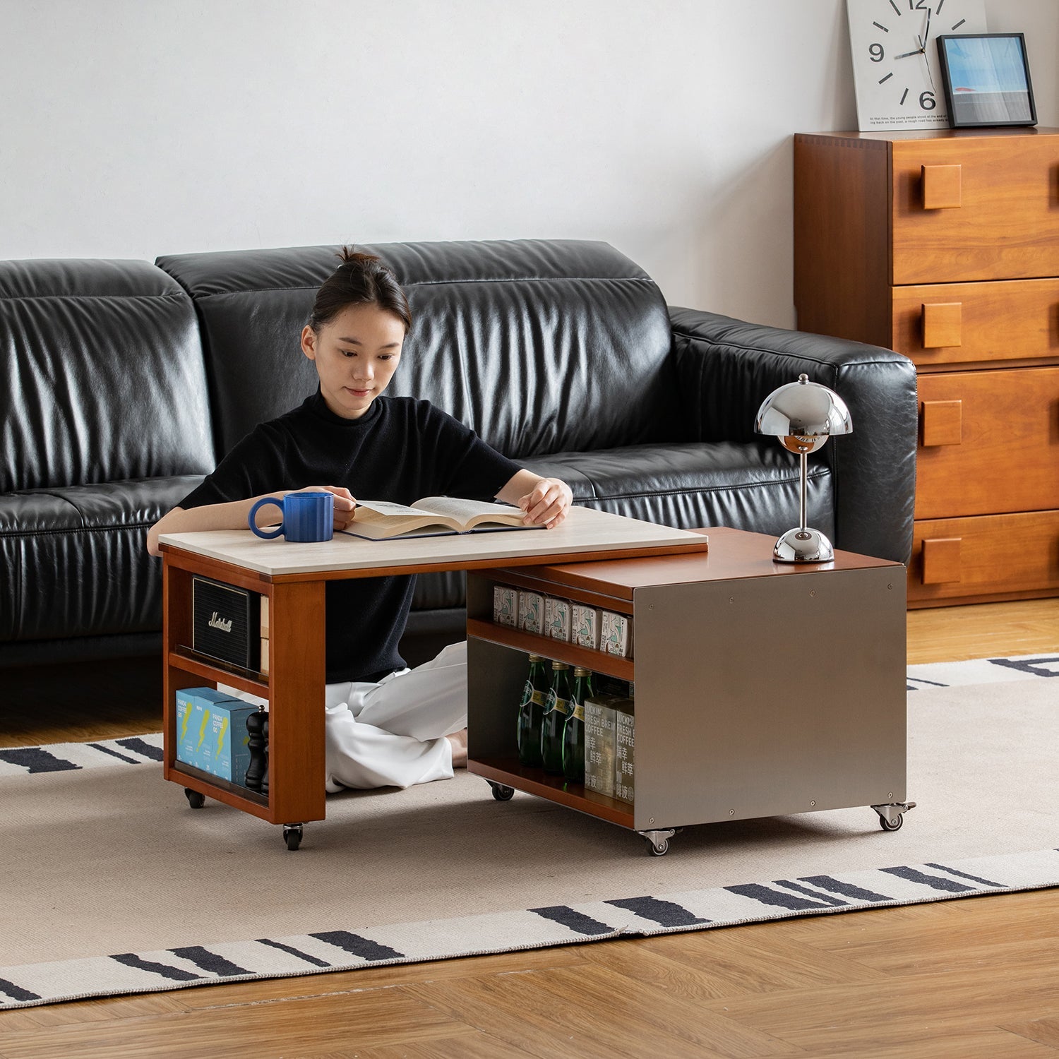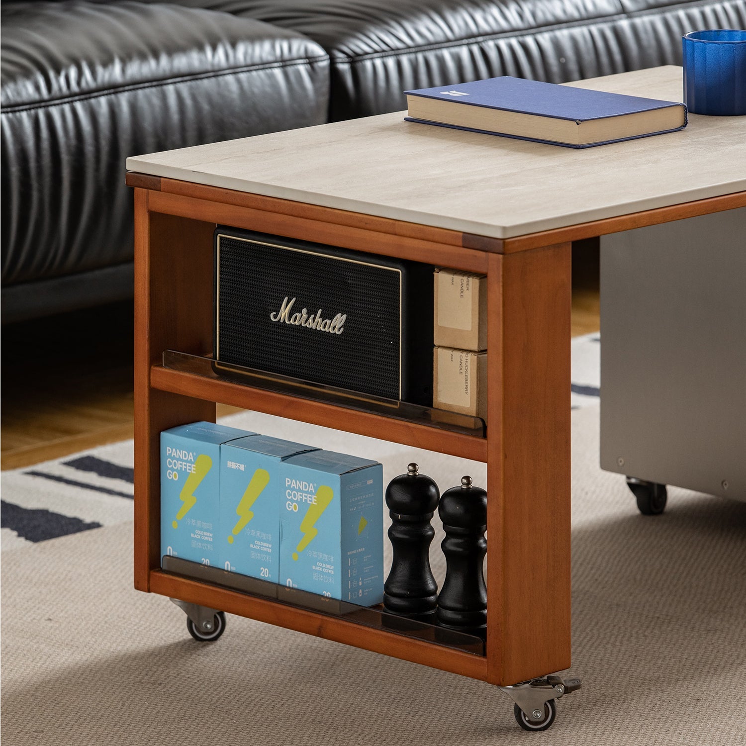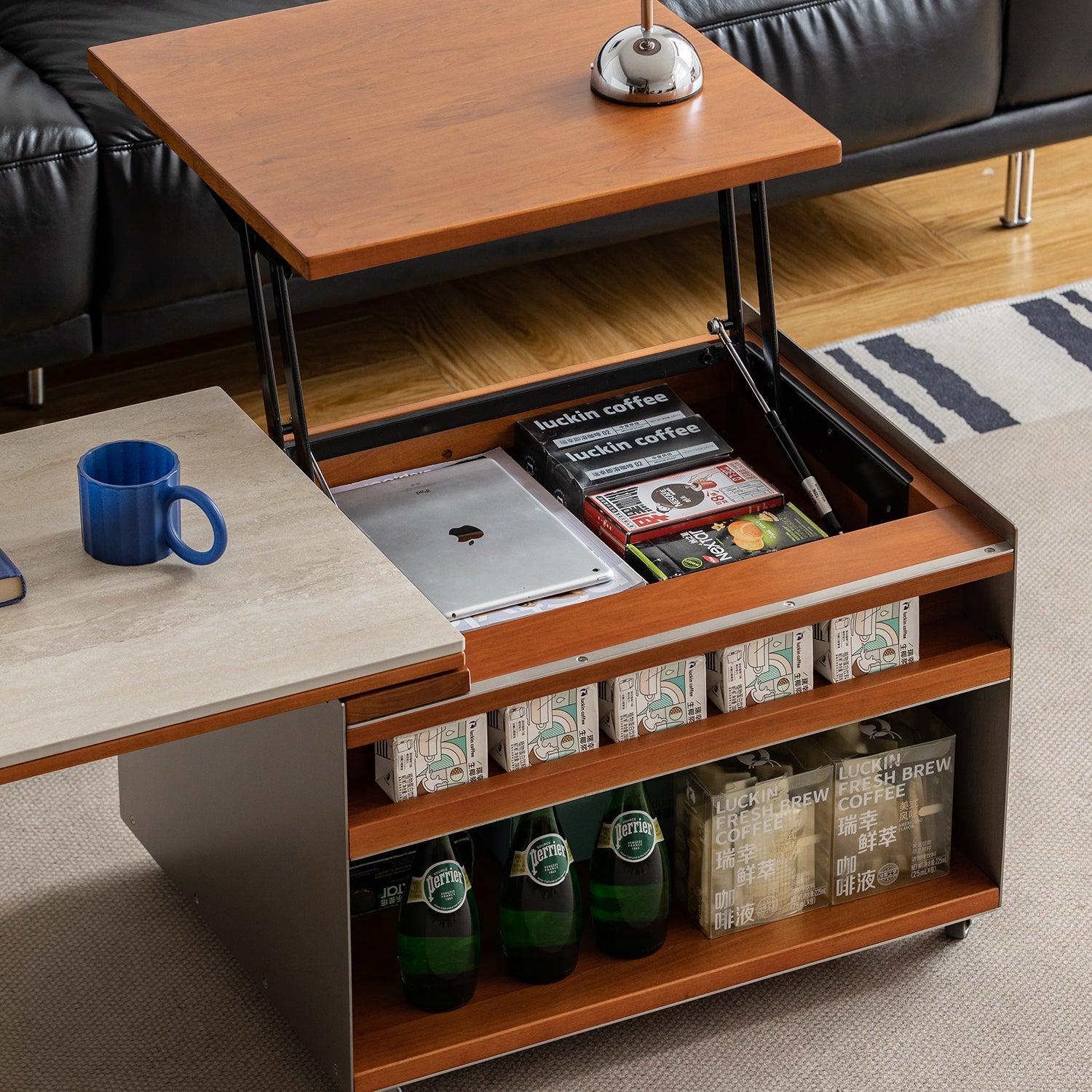 Vintage Boxwood Sintered Stone Lift Up Coffee Table SILVER WING blends elegant boxwood warmth with a durable stone top and smart lift function for modern living.